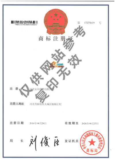 備案號(hào):冀ICP備16008856號(hào)-1 版權(quán)所有:河北安高建材有限公司 手機(jī):15933646451 地址:河北省大城縣里坦鎮(zhèn)娘娘莊村北 企業(yè)網(wǎng)站建設(shè):新天地網(wǎng)絡(luò)